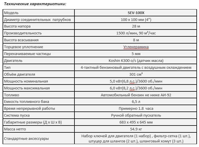 О товаре Бензиновая мотопомпа для загрязненной воды Koshin SEV-100X