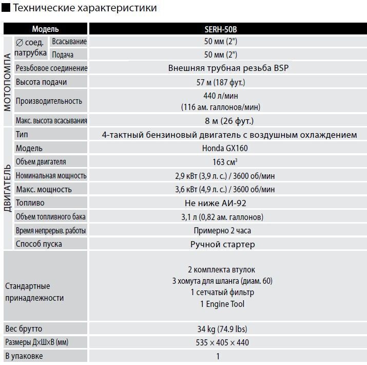 О товаре Бензиновая высоконапорная мотопомпа Koshin SERH-50B