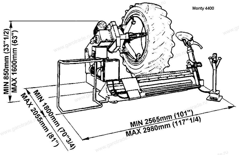 О товаре Шиномонтажный станок для колес грузовых автомобилей тракторов и спецтехники до 44 (56) дюймов Monty 4400 Hofmann