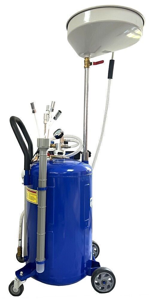 • Продуманная конструкция: 6 щупов со специальной тубой для их хранения, широкая воронка для слива, манометр и подвижная колесная база.
